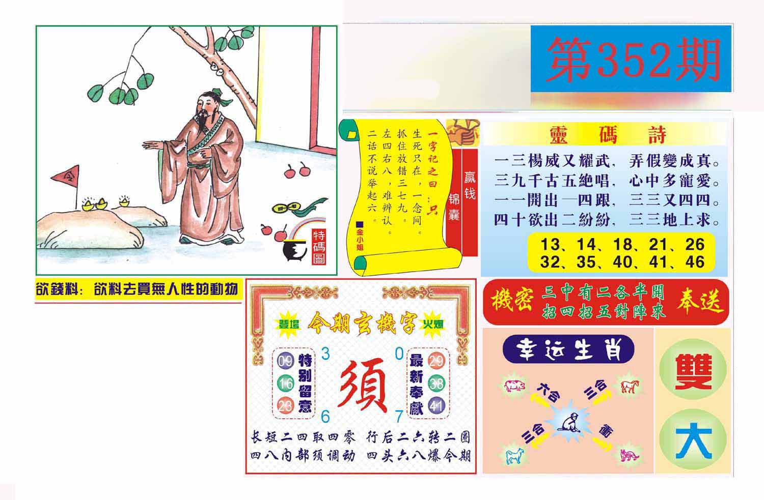| 348期: 《12码中特》「35.47.04.16.17.29.32.44.07.19.14.26」开:狗32准 |