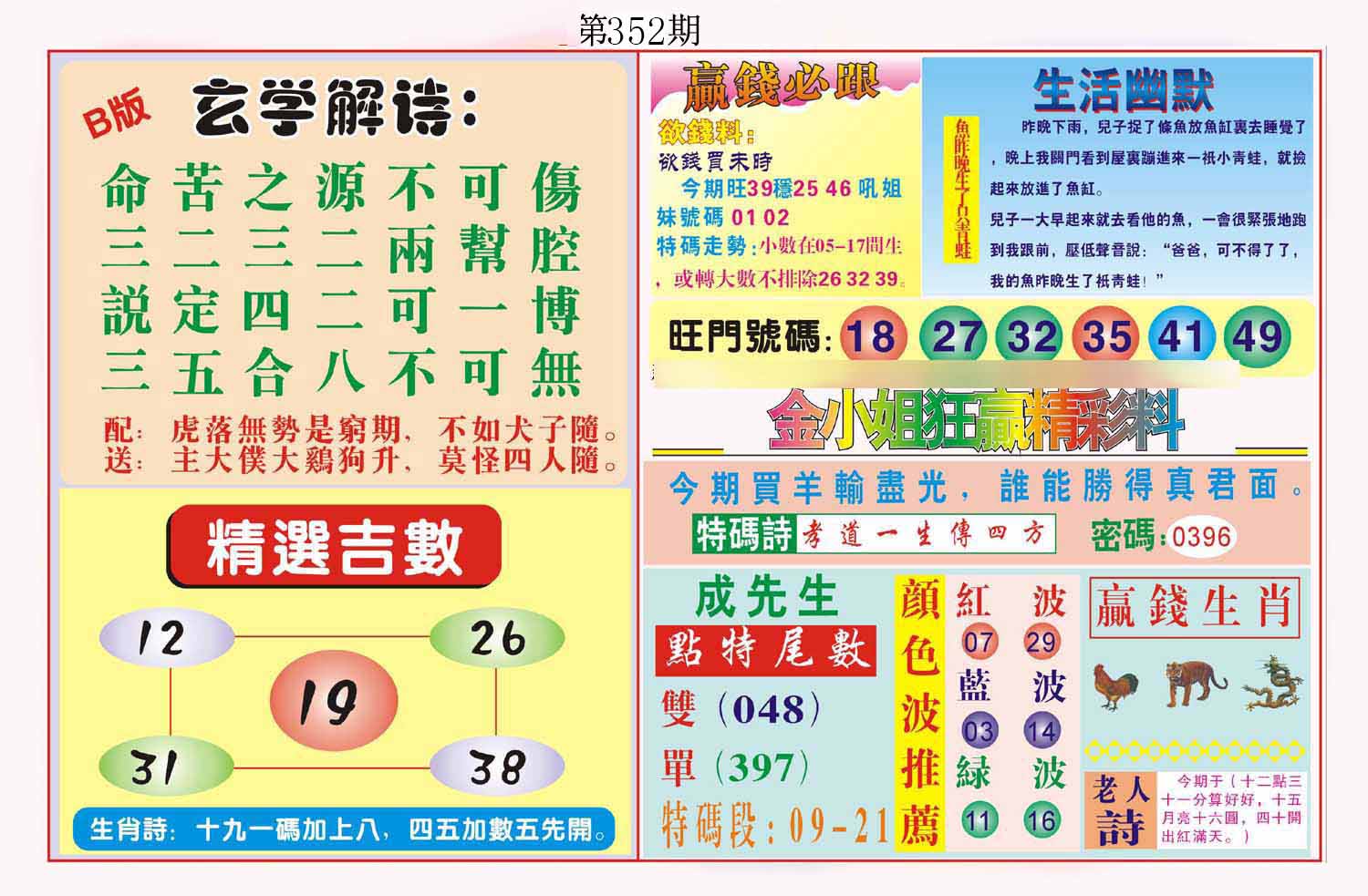 | 349期《杀三尾》-「6-9-2尾」开:虎28 |